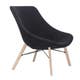 Soft padding and a wood base give this AUKI chair intimate and embracing warmth, ideal for embellishing a living room in the home, a waiting room or a work area.