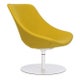 Lounge chair with internal metal frame upholstered with fire-retardant moulded polyurethane foam and covered with fabric, soft leather or eco-leather. Round metal swivel base covered by a stainless steel sheet or powder coated, also available with return-mechanism of the seat. Felt under the base.