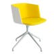 Chair with Baydur® fire resistant polyurethane shell, only front upholstered with fire resistant foam and covered with fabric, ecoleather or leather. Trestle swivel base in sandblasted aluminum or powder coated. Glides in polythene