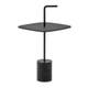 Occasional table with marble base white Carrara, black Marquinia or concrete. Top in HPL Fenix® white or black in several shapes and powder coated metal stem.