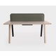 MDF tops covered in Fenix® laminate, bleached oak or open-pore black. Flush-mounted cable entry doors in the same finish and cable ducts in powder-coated bent sheet metal. Sound-absorbing partition covered in fabric. Also available on castors.