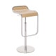 Stool with swivel seat and adjustable height with gas spring and self-returning mechanism to original height and position. Metal frame mat chromed and base in zinc-plated metal covered by a stainless steel sheet "linen pattern".