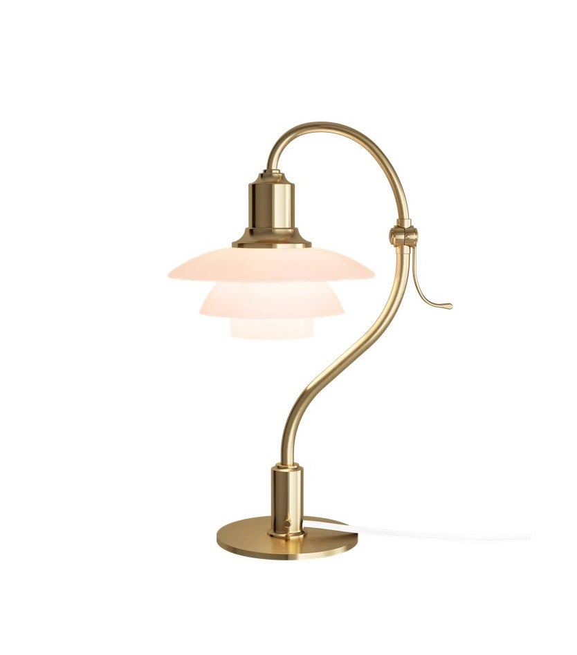 Originally designed by Poul Henningsen in 1931, the PH 2/2 Question Mark Table Lamp is based on the iconic three-shade system known as the System PH, where three mouthblown glass shades provide a soft glare-free light. With its name deriving from the curvature of the stem, the petite table lamp has a characteristic form and an adjustable lamp head which can rotate 45 degrees to either, to direct light where it is required. Until the mid-1950s, the PH 2/2 Question Mark Table Lamp was made of brass and available with coloured glass shades in amber, red or yellow, as well as the classic opal glass, to honour this and Henningsen’s fascination with colour and light, the PH 2/2 Question Mark Pale Rose Table Lamp was created.