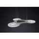 Circular suspensions with 3 LED light sources. The structure is composed of three thin sheets, externally natural anodized aluminum and internally methacrylate, which provides direct light downward through lenticular polycarbonate diffusers, while the methacrylate layer spreads diffusely light in the surrounding. Dimmable power supply housed in the ceiling rose. Transparent power and suspension cables.