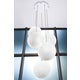 ICEGLOBE BUBBLE, cascade suspension version composed of 3, 5 or 10 elements. Sphere made of self-extinguishing micropunched polycarbonate with a diameter of 30 cm. The canopy is available in matt white finish with details in satin nickel. Cable length: max 3 m.