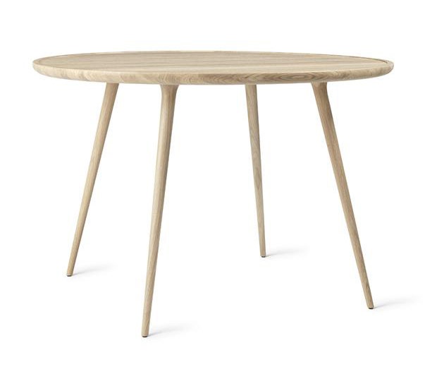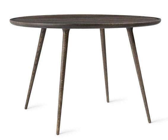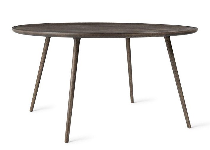 The Mater Accent Dining Table is designed by the Danish architect duo Space Copenhagen and combines a sculptural and handcrafted aesthetic. Following along the same bloodline as the highly successful 2009 Mater High Stool, the Accent collection consists of three coffee tables, a larger oval lounge table and round dining table. Crafted in solid FSC certified oak with a sirka grey stain.