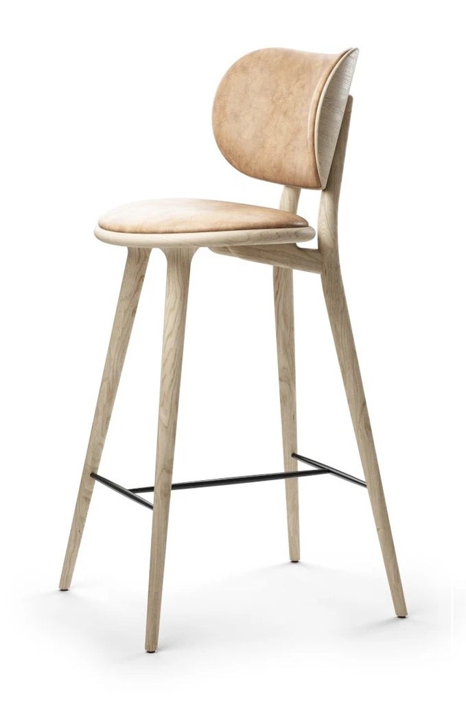 Space Copenhagen designed the High Stool with a new backrest — hence the name High Stool Backrest — which builds on High Stool’s beautifully fluid, sculptural and archetypal character, adding a generously rounded backrest for a heightened sense of comfort. The backrest itself is upholstered in soft durable leather and is fully supportive and comfortable so that it outweighs the need for armrests.