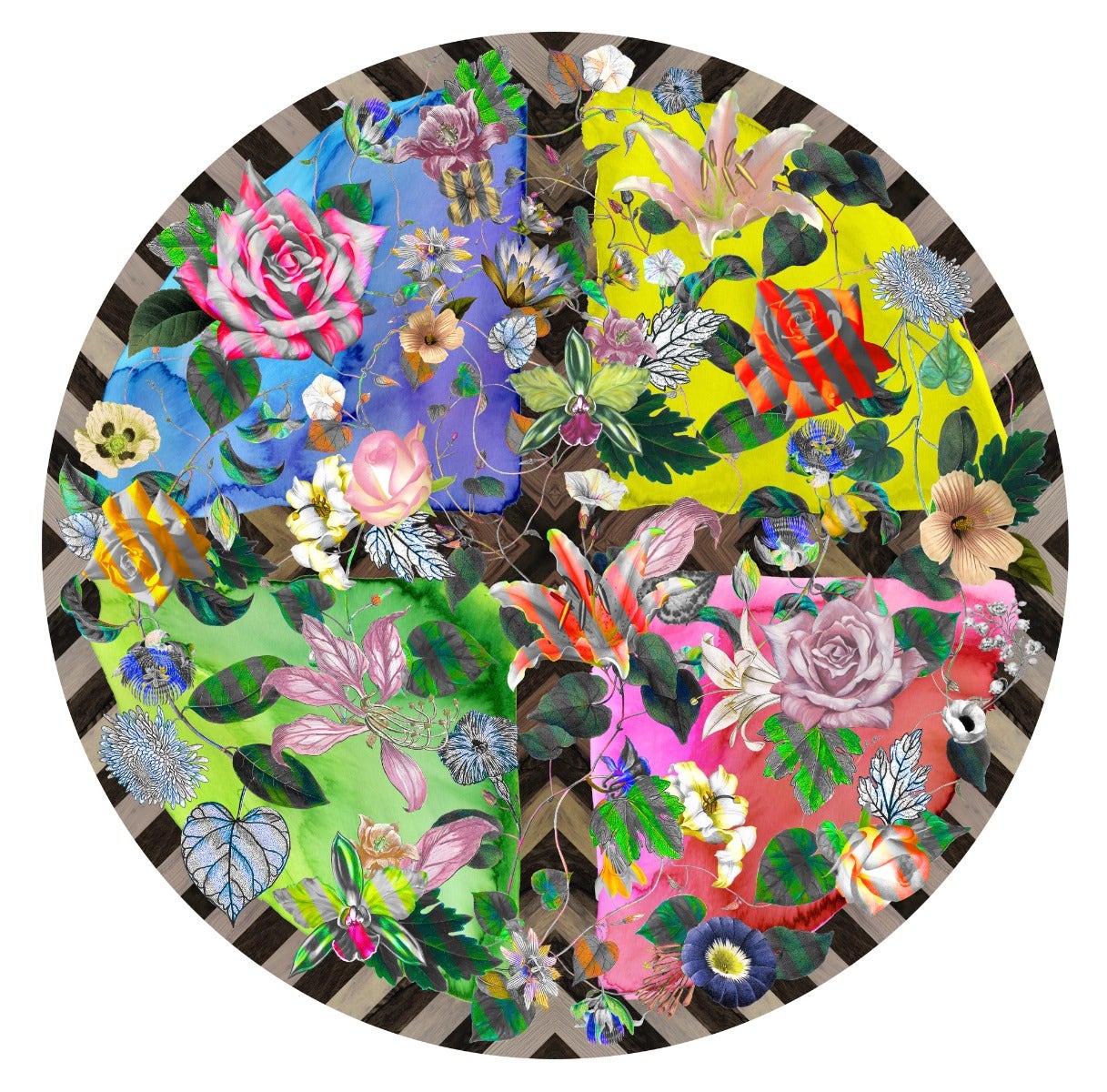 The Malmaison collection is inspired by the exentricity of the Incroyables and Merveilleuses as well as the revival of a proven Paris after the French Revolution.“Malmaison”, signature carpet of the season, mixes the rigor of Empire style and the folly of Josephine’s rosegardens in a modern evocation of liberty, explosion of colours, flowers and humour. Cheerfullness, chic and energy are the keywords to a collection of refreshing positivity.
