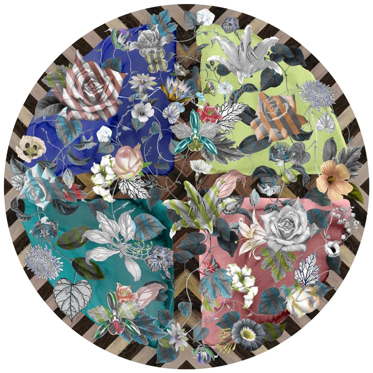 The Malmaison collection is inspired by the exentricity of the Incroyables and Merveilleuses as well as the revival of a proven Paris after the French Revolution.“Malmaison”, signature carpet of the season, mixes the rigor of Empire style and the folly of Josephine’s rosegardens in a modern evocation of liberty, explosion of colours, flowers and humour. Cheerfullness, chic and energy are the keywords to a collection of refreshing positivity.
