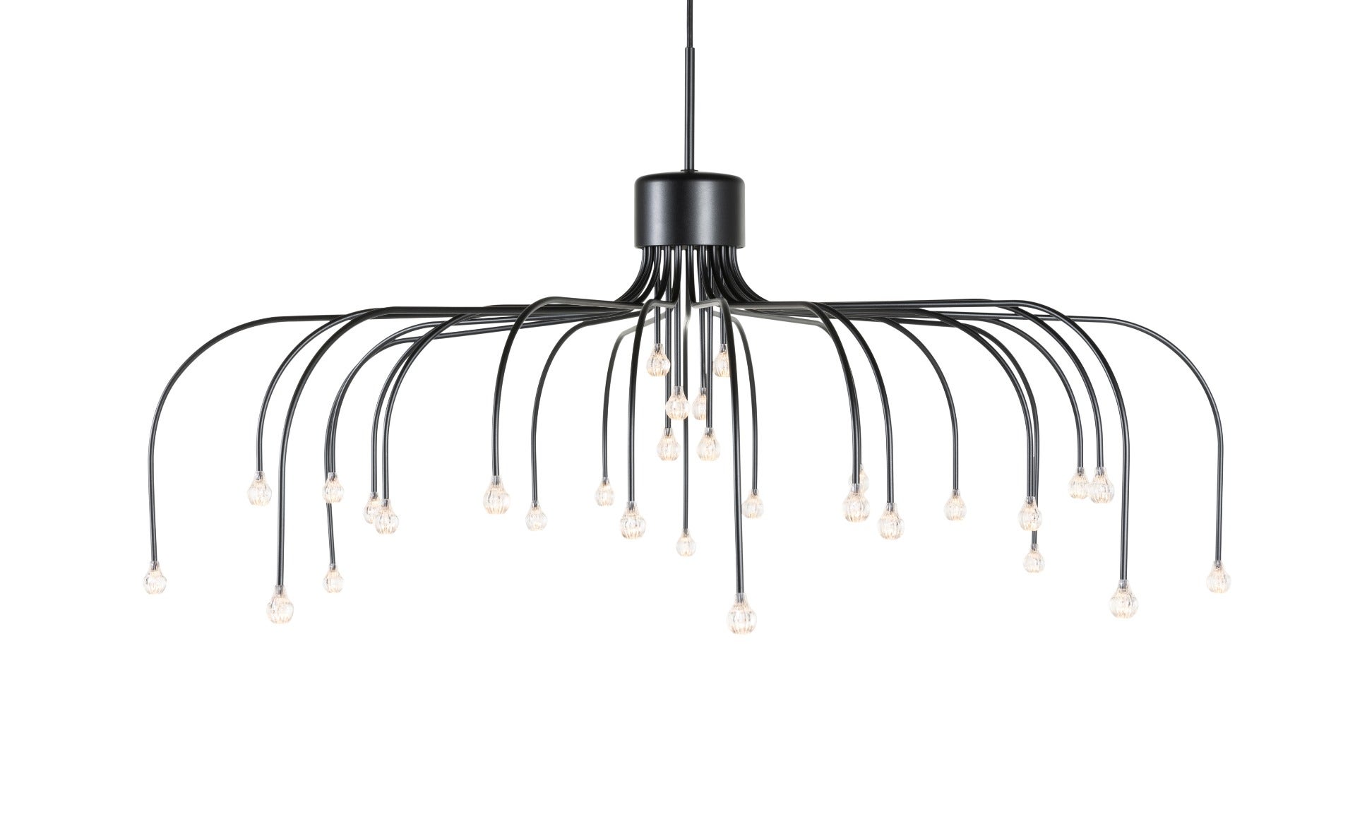 Live under the stars with Starfall Light by Front! The Starfall Light is a circular suspension light with a contemporary twist. Punctuated with 30 LED light sources, this upside-down chandelier brings perpetual star fall in your home. Thanks to 30 slim arms of different lengths, it not only resembles falling stars but also a starry night sky with dots of light at varying heights. A brand-new constellation waiting to be discovered! Installation is a breeze, thanks to the arms already in place, so you can enjoy your falling stars within moments.