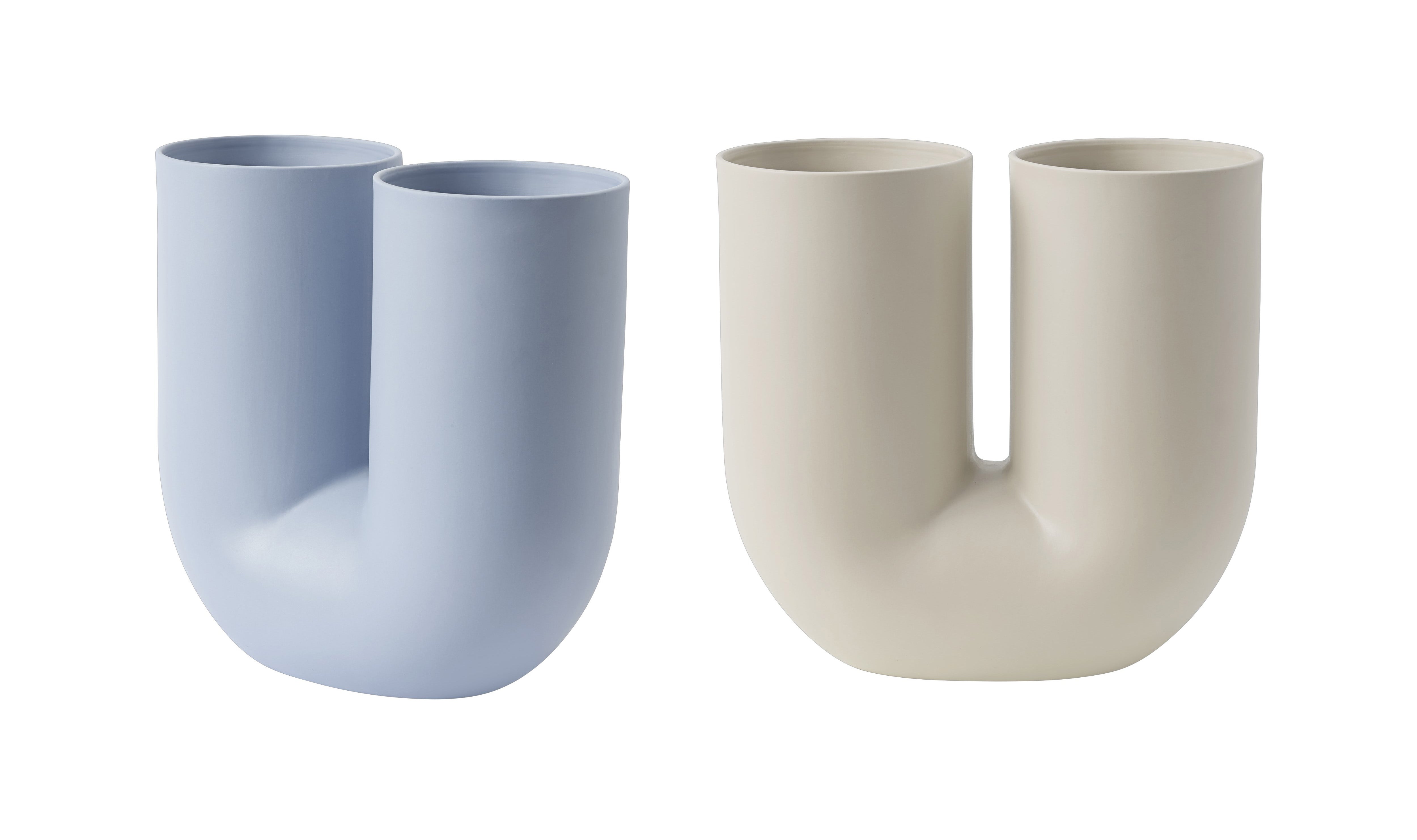 The Kink Vase brings a contemporary form to the archetypal flower vase through a combination of traditional craftsmanship and playful design language. With its double opening, the Kink Vase adds a sculptural sentiment to the room, even when not in use. The design is made in porcelain that has been glazed on the inside for a refined touch.