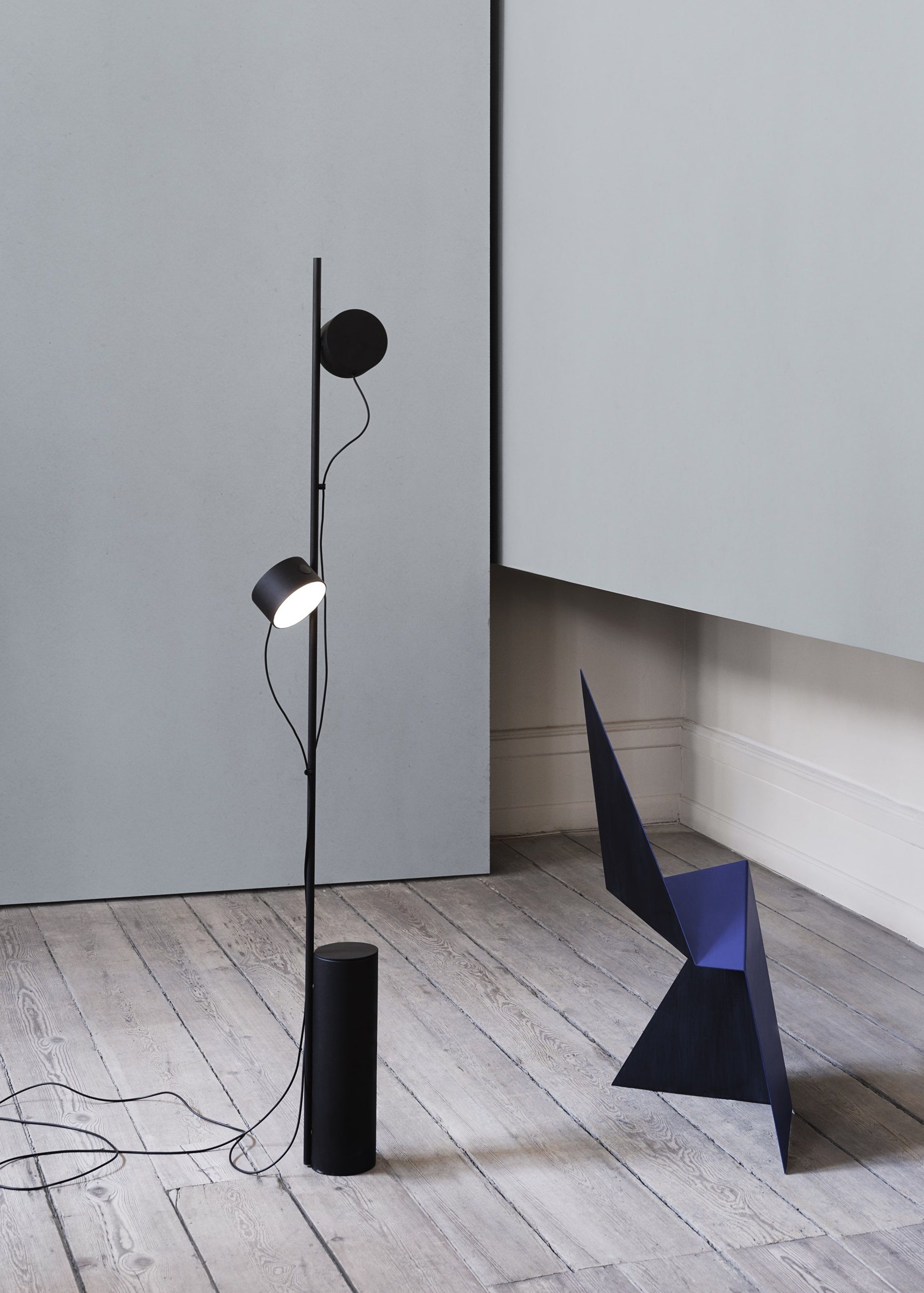 The Post Floor Lamp is an innovative modular lighting design with an archetypal appearance, graphic lines and forward-thinking functionalities. Exploring the utmost flexibility of a magnetic joint, the individual lighting units of the design can be positioned, turned and dimmed up and down to individual needs. Use the magnetic cable drops to position the cords on the rod. The Post Floor Lamp comes with two lighting units. An additional lighting unit can be purchased as spare part and added to the design by plugging it into the power hub and positioning it on the rod.