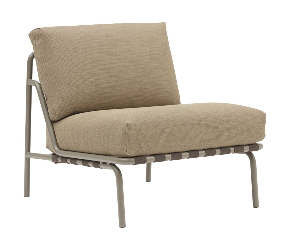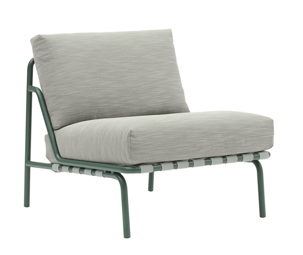 Settle Outdoor Lounge Chair invites you to settle into its comfort, providing an ideal setting for enjoying the outdoors all day. Its airy steel frame, complete with visible belts and intricate details, enhances its visual allure from all angles, while its armrests, made from FSC™-certified (FSC-C028824) sapele mahogany wood, add a warm, tactile feel. Settle’s steel frame is galvanized, primed and powder-coated, ensuring corrosion resistance for long-lasting use. The plush cushions, made with quick-dry foam and durable outdoor textiles, offer fast-drying resilience in rain showers and year-round durability when used with an outdoor cover.