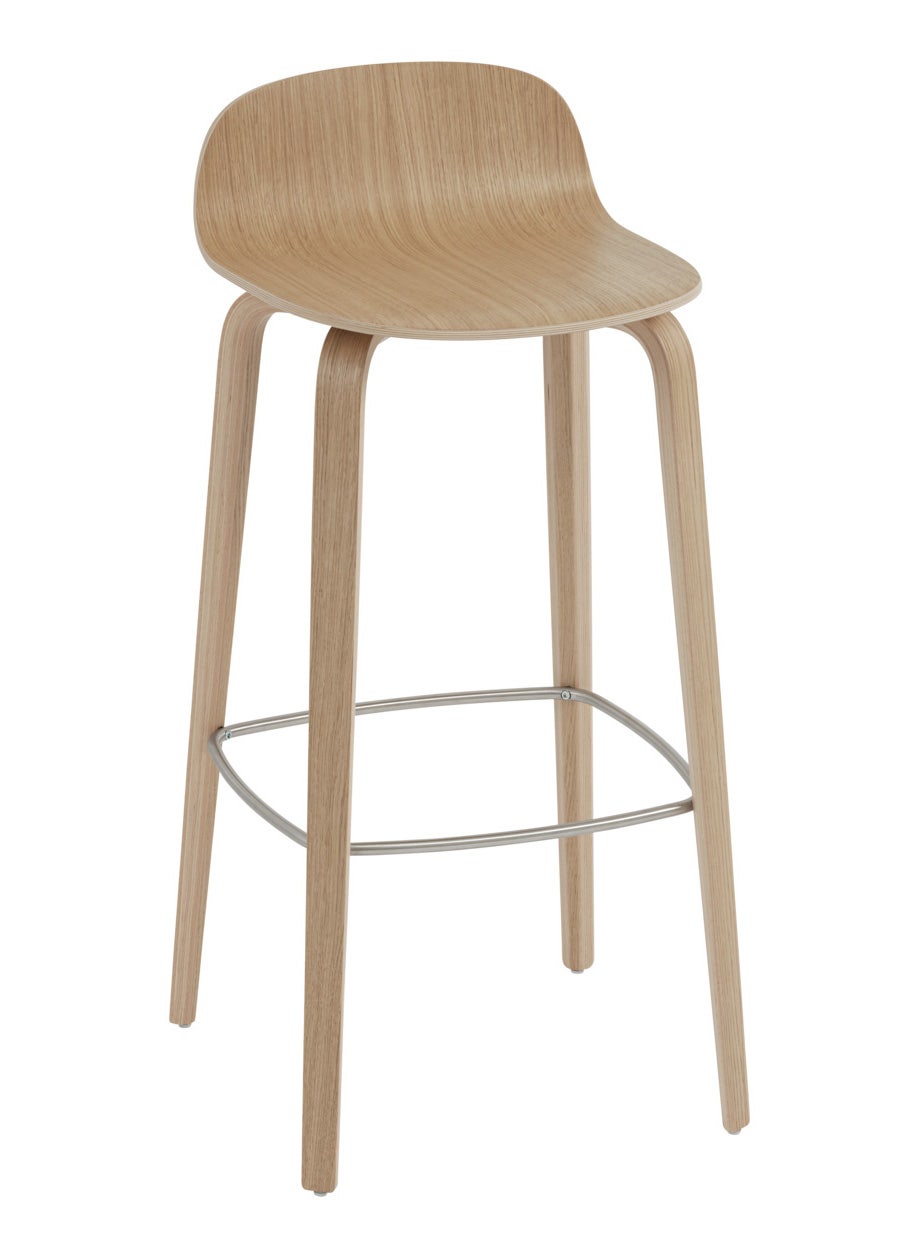 The VISU BAR STOOL is an ergonomic and functional bar stool with a timeless and recognizable profile. Formpressed veneer wood gives the shell of the chair its characteristic shape and creates visible lines and patterns in the surface that complement the design.