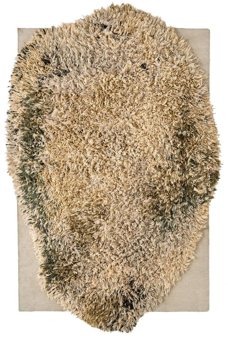The Alga collection by Nani Marquina is an invitation to the senses, inspired by seagrass landscapes. At first glance, its hand knotted organic shape stands out over a hand loomed dhurrie. However, the complexity of its design goes beyond its form. The biggest challenge was to create a visually dynamic rug while using such long fibers.