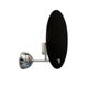 Wall lamp with a circular reflector in aluminum, which shields the lighting distribution, giving the effect of a solar eclipse. The circular screen is painted in white or black, the stem and the metal small parts and hemispherical support are chromed.