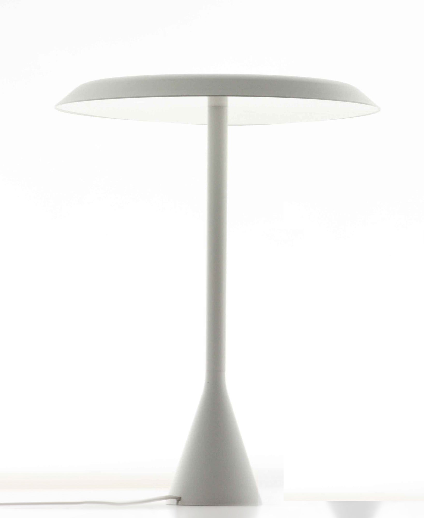 Table lamp with LED sources for a widespread lighting, suitable for domestic and working places. Aluminum structure, polycarbonate diffuser with anti-glare treatment.