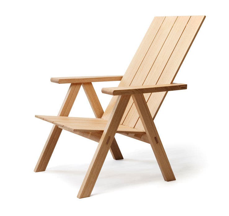This comfortable outdoor chair is made following the traditions of the Nordic craftsmanship. The wooden nails play an important structural part. The colour of the wood will turn grey gradually over time when outdoors while exposed to UV rays, which will give extra character to the product.