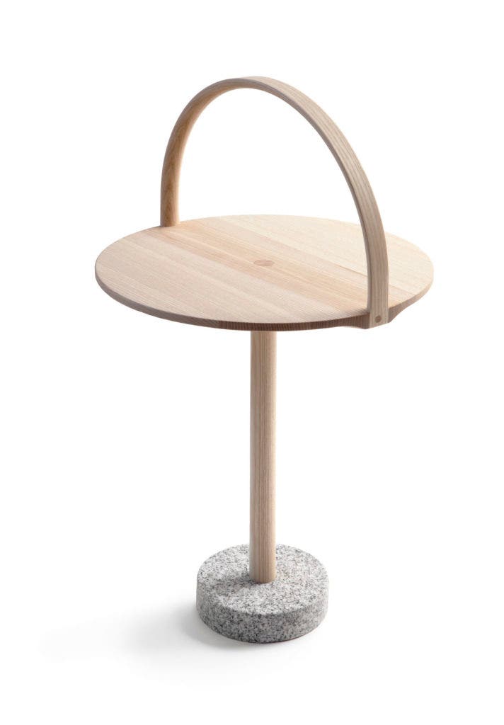 February Table is easy to carry around due to its handle. The details follow the Nordic craftsmanship tradition, and the heavy granite stone takes care of the stability.