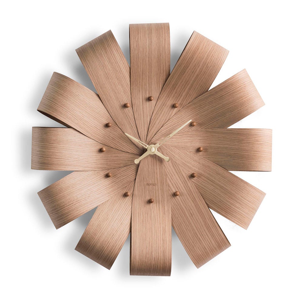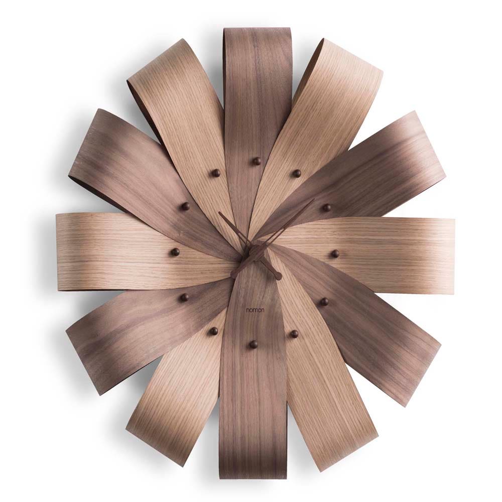A totally new concept for Nomon. For the first time, we work with subtly folded wooden leaves. The round silhouette connects us with nature, emulating an open flower in all its splendor. The small marks of the time signals would come to be the pollen.