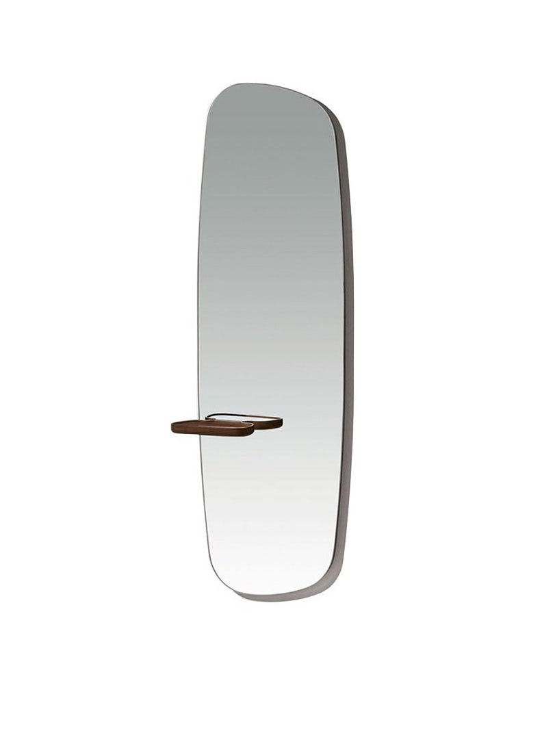 The modern wall mirror is part of the Moments collection by Andrés Martínez for Nomon Home. The uniqueness of this mirror lies in its careful proportions and shapes. The tray in walnut or ash wood with soft lines has been made by hand.