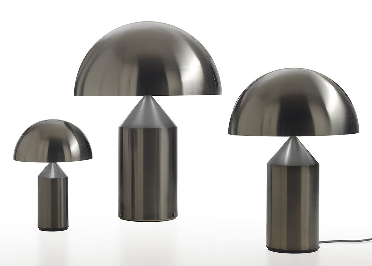 Atollo has become the archetype of the table lamp, winning the Compasso d’Oro in 1979 and completely revolutionising the way we imagine the classic bedside lamp. The geometric shapes that compose it – cylinder, cone and hemisphere – have resulted in a product that is decorative and essential at the same time, disconnected from the historical period and the fashions of the moment, and one that has now fully become one of the icons of Italian design.