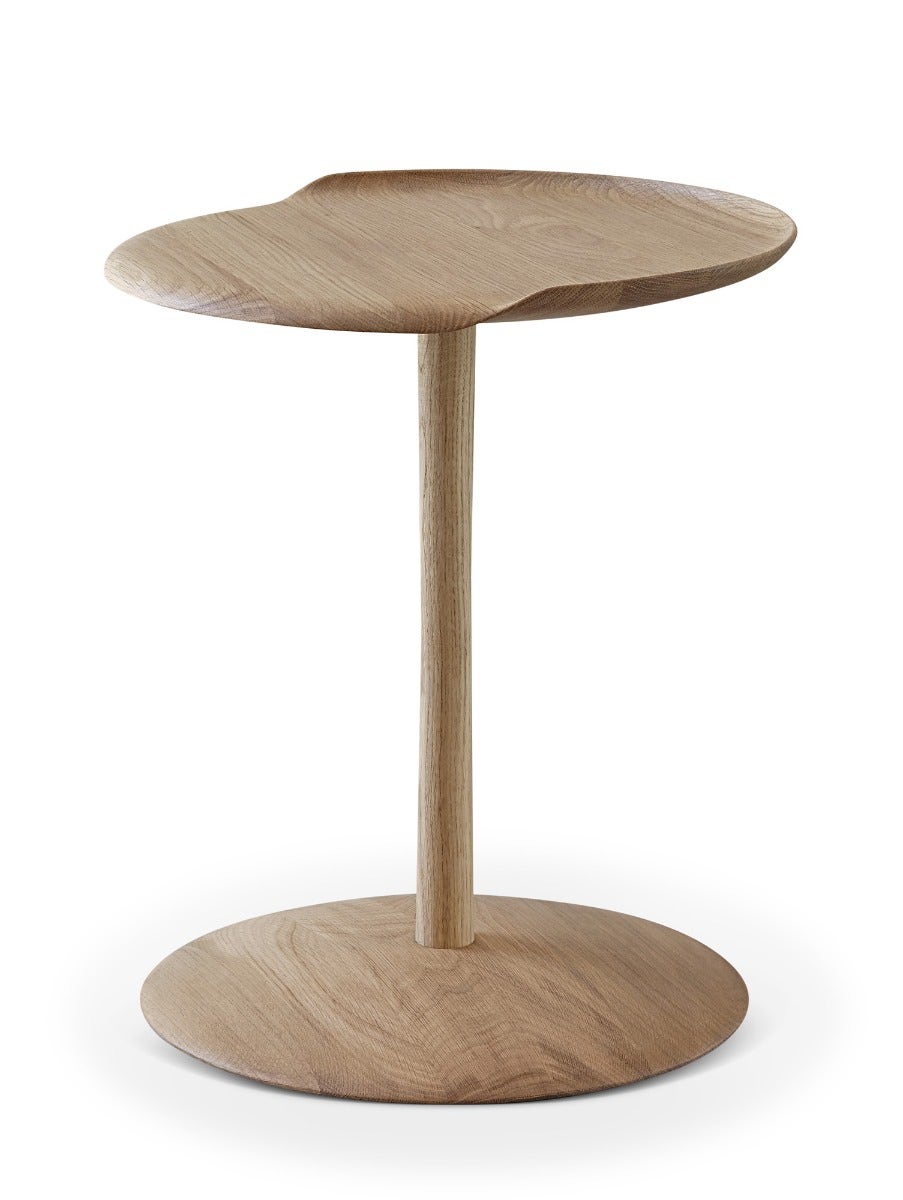 ‘Åkande’ means Water Lily in Danish and is a furniture series designed by Jonas Lyndby Jensen, former winner of the Finn Juhl Prize. The series, which counts two stools, one side table, and a desk, is characterized by its irresistible detailing around the edges, reminiscent of a single leaf from a Water Lily. This feature strives to soften the appearance of the hard wood and give the design a living and organic shape. In order to achieve this result, wood as the sole material plays a crucial role, as artificial materials would never allow for the same degree of tactility, warmth and sensuousness. The stool with four legs and the desk are available in solid oak. The stool with three legs and the side table are available in both solid oak and solid walnut.