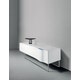 Breeze is a series of horizontal sideboards, either wall-hanging or with a free standing structure that rests on an asymmetrical polished chrome steel structure. Everything is made out of MDF with a curved plywood door and inner honeycomb panel. The opening and closing mechanism is controlled with steel cables with gas-powered pistons.