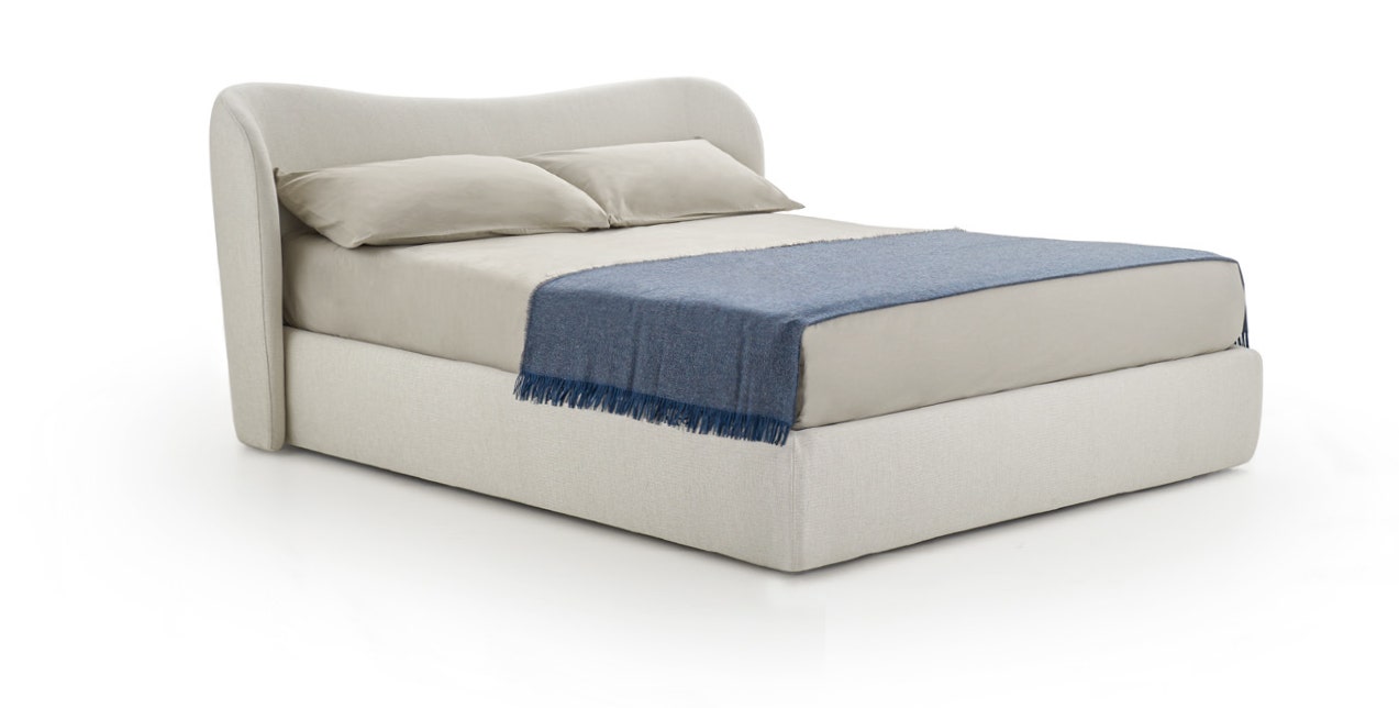 Its classic-inspired forms are reassuringly solemn, distinguished, yet also inviting. The refined simplicity of the Embrace bed echoes the warmth of an embrace, a retreat to a safe haven. The dominating feature of the bed, the curved headboard, cocoons the main body of the bed in an inviting, material embrace, offering protective, reassuring shoulders. The version without an underbed storage container can accommodate a recessed mattress. Concealed legs raise the structure a few centimetres off the floor in a delicate, almost indiscernible appearance of floating.