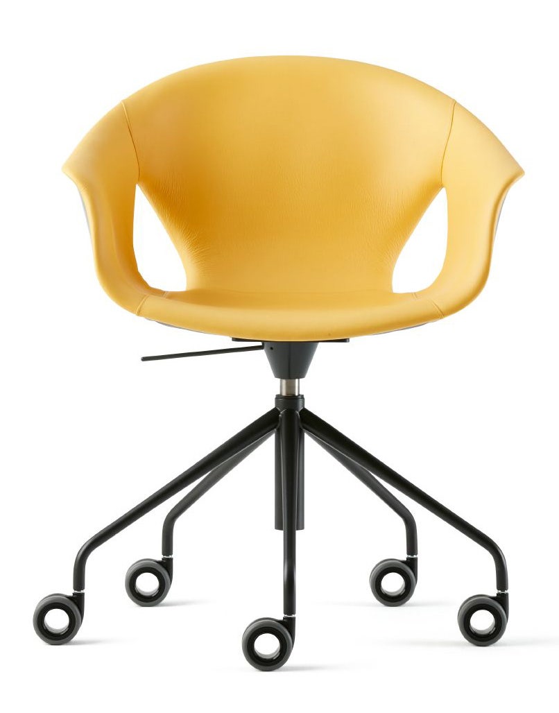 Luxurious yet informal, Ginger Ale is a simplified version of Poltrona Frau’s Ginger chair. The inner shell surface is upholstered in soft and supple Pelle Frau® Color System leather. The chair is sophisticated and compact, appropriate for visitor, meeting, or dining areas. Casters are soft, W type, which is suitable for all types offlooring.
