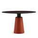 Translated from Italian to English, “mesa due” literally means “table two.” Mesa Due is Poltrona Frau’s second interpretation of its iconic Mesa table. Combining two shapes—a circle and a cone—Mesa Due brings simplicity and elegance together. Tops upholstered in colorful leather or veneered in rich wood tones are supported by a beautiful leather base.
