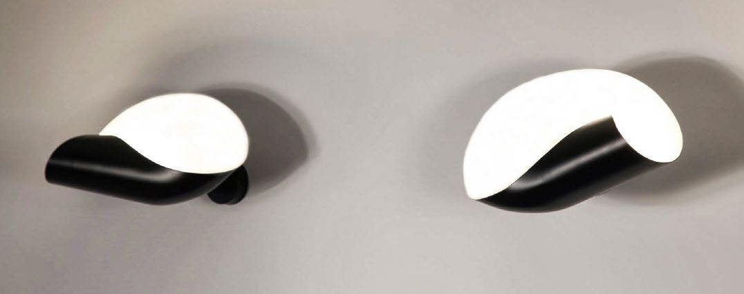 The art of manufacturing is applied with the utmost respect, the integrity of this edition is maintained as the first models made by Serge Mouille, each shape is pushed back on the period molds, materials, proportions and techniques remain for their parts unchanged, black painted steel rod, black lacquered aluminum reflectors and white interior, brass ball joints.