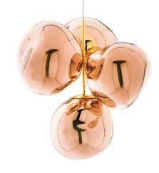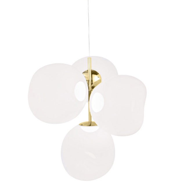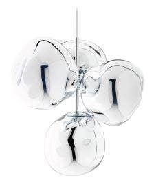 A swarm, huddle, herd, cluster or bunch; there are a thousand ways of configuring our lamps to produce an extraordinary lighting arrangement. The latest addition to the Melt family includes the small chandelier, featuring four orbs protruding from steel tubes and is one metre high.