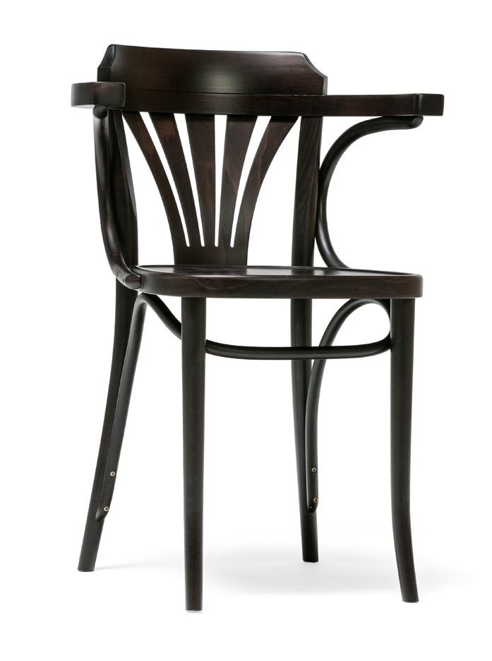 This traditional armchair with a characteristic fan filling the backrest is very similar to a model No. 25. The main differences are in a seat size and overall height which is bigger in the No. 25. The plywood seat can be upgraded with a relief and the upholstered version with decorative studs framing the seat and top part of the backrest.