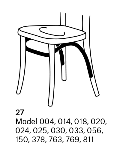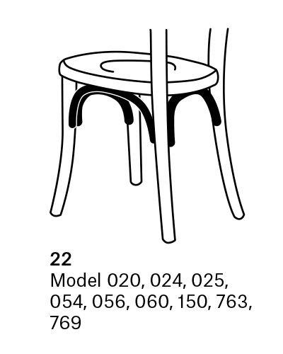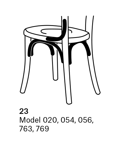 This chair was designed as early as 1885. Its distinct feature is the plywood fan filling the backrest. The upholstered version can be upgraded with decorative studs framing the seat and the top of the backrest.