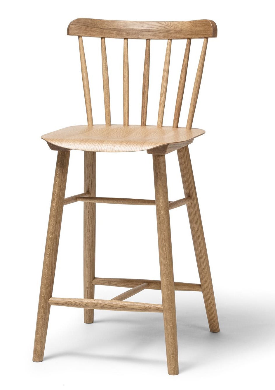 The barstool from the Ironica series is characterised by the same form as its namesake chair. The barstool is made with seven hand-finished dowels to hold the rounded backrest and is available in low and standard heights.