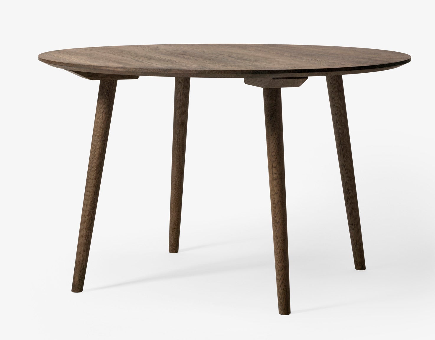 The In Between chair was the first chair to be added to the &tradition stable of furniture and Kallio has reinterpreted certain aspects of the chair in the creation of the table. The curvature of the circular table is for example reminiscent of the negative space in the form of the chair’s backrest. Similarly the angles of the legs of the table reflect the angles of the chair legs. The table legs were created using woodturning, a traditional technique that uses a lathe to shape wood. For &tradition a connection to the past is an essential component for any item in the collection. “Wood turning is a result of my love for Scandinavian heritage and traditional wood crafting,” says Kallio,“there is a satisfaction that comes from using old techniques.” The materials used for the table further solidify a link to the past. The solid oak used is a sturdy, reliable wood that is steeped in Scandinavian heritage. “Oak is a good long-lasting material that people can easily relate to,” says Kallio. Although some of the manufacturing processes are traditional, the table still comes disassembled as a flat-pack, addressing ease of transport in a modern world. Furthermore, the shape of the table has been chosen to address issues within modern interiors. Its round shape means it must be brought away from walls, therefore taking an active role in any room. The circular form of the table also means that interaction when sat at the table is a more intimate and egalitarian affair.