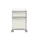 Mobile file pedestal with one 6" drawer and one 14" letter filing drawer and casters. DESIGNED BY: Fritz Haller and Paul Schaerer, 1963 MORE INFO