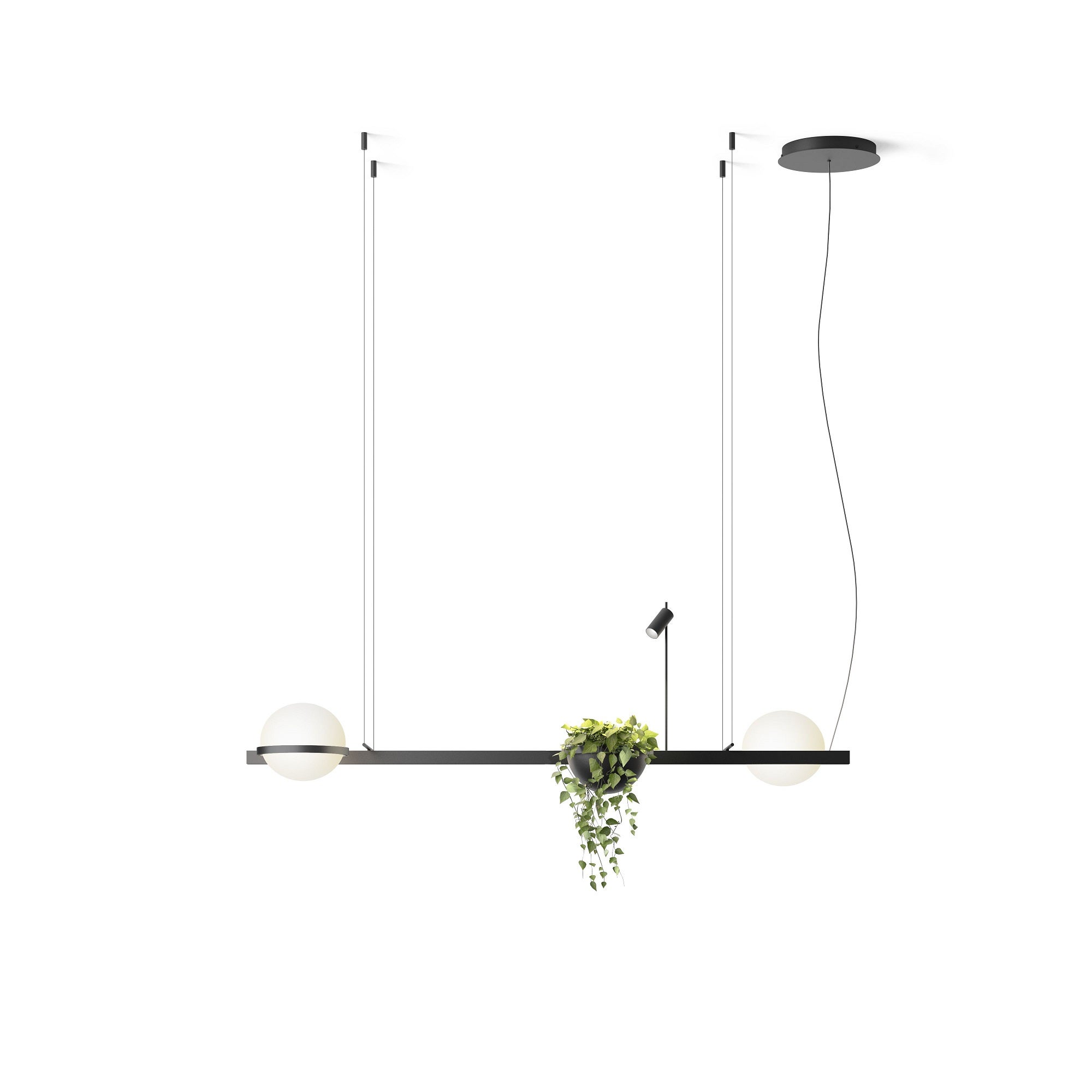 Nature takes control of the space. With the pendant lamps the interior ambience takes on a life of its own with the possibility of integrating plants with the lighting compositions.