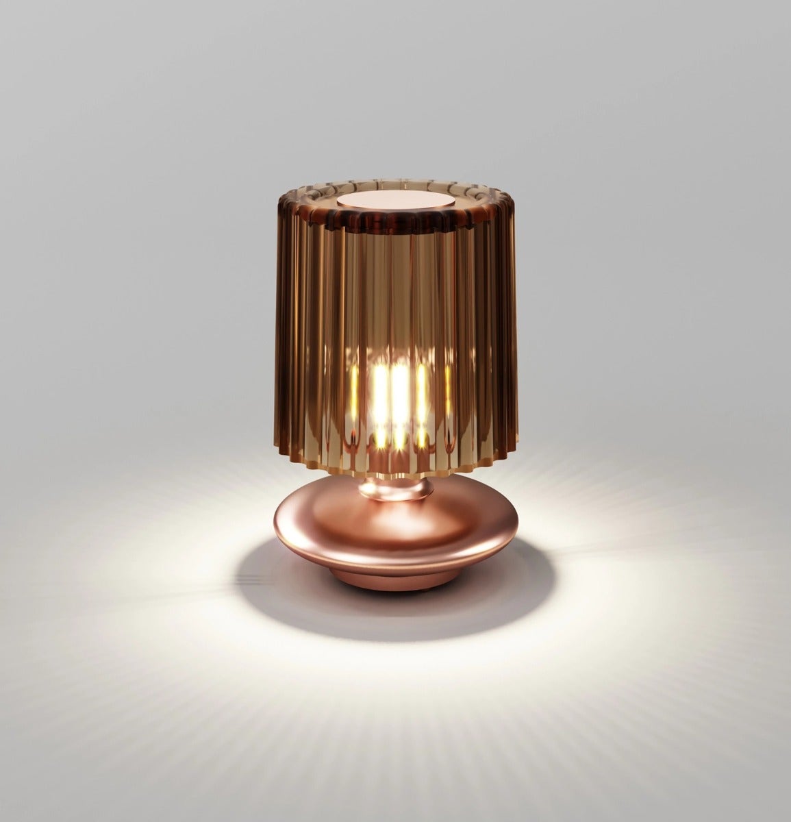 The “technicity” of the metal element combined with the blown glass diffuser gives Tread an “industrial” style. An object reminiscent of vintage electrical equipment for its particular shape, in which the finned heat sink, combined with blown glass, becomes a distinctive element. Tread creates an avant-garde and stylish atmosphere by combining crystal, smoke, burnt earth and old green glass with copper, gold and bronze matt finishes. The pendant version adds a new dimension to the collection with a larger diameter diffuser allowing it to be installed individually in smaller living spaces.