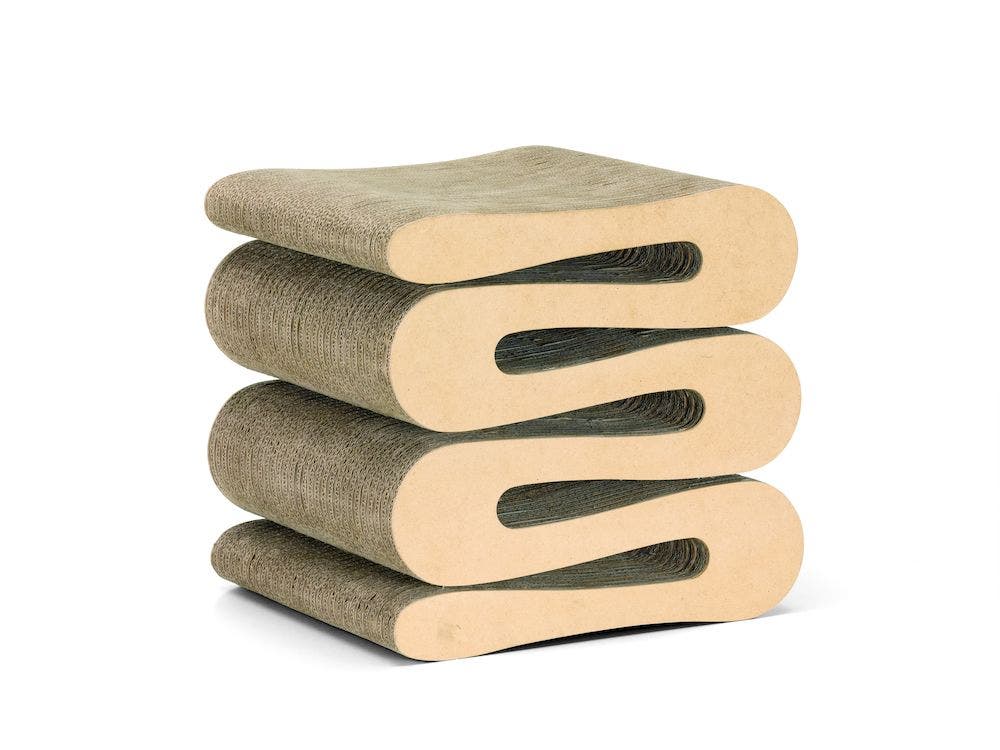 The Wiggle Stool is part of Frank Gehry's 1972 furniture series 'Easy Edges', which successfully introduced a new aesthetic dimension to such an everyday material as cardboard. The iconic stool is robust and lends a striking note to any interior.