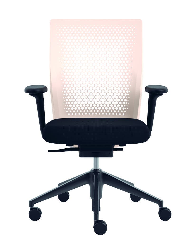 The one-piece plastic backrest of the ID Air office chair is an innovative construction manufactured in a patented process. With the strategically placed perforations in its backrest, ID Air offers great freedom of movement while providing the necessary support for healthy sitting postures. The flexibility of the backrest and the effective air circulation are complemented by soft seat upholstery to ensure a high degree of comfort.