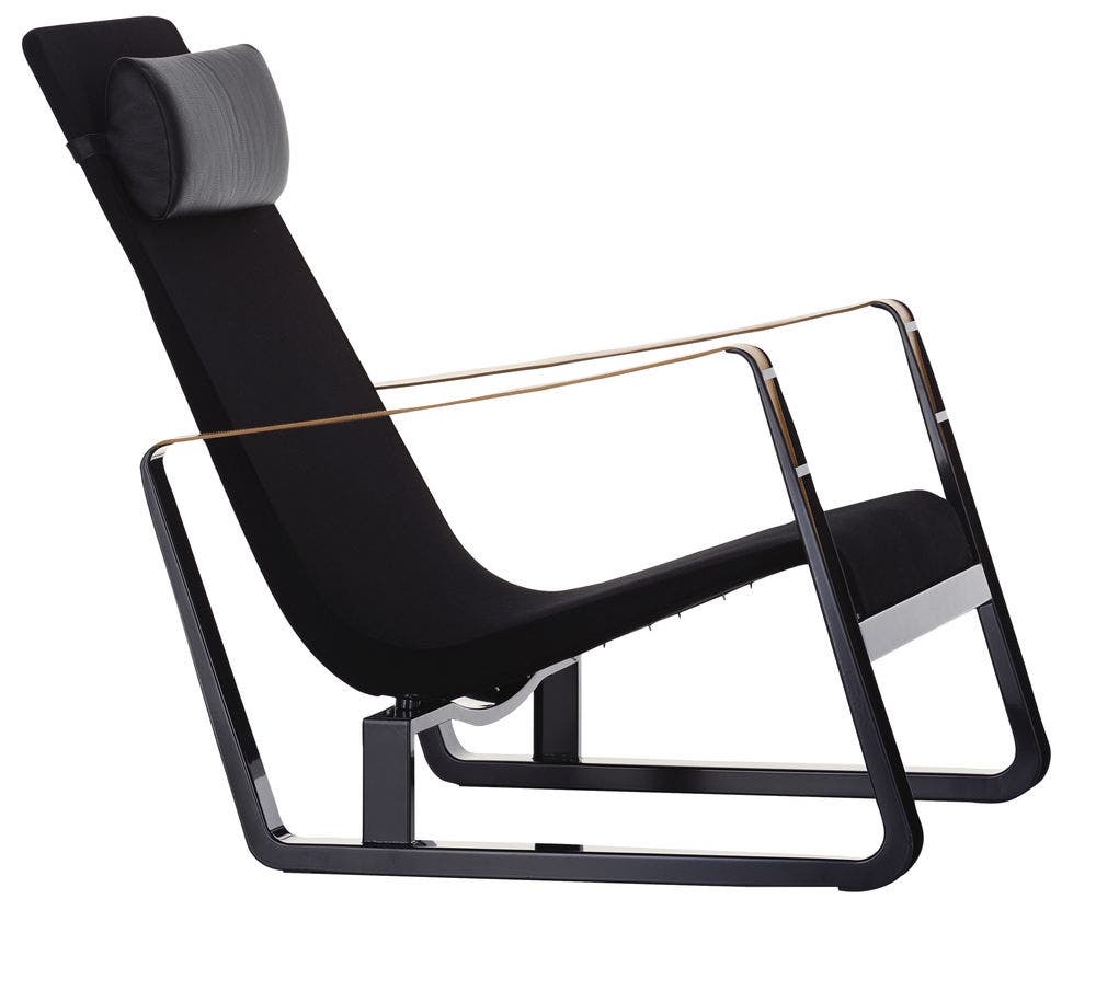 The Cité armchair is an early masterpiece by the French designer and engineer Jean Prouvé. Originally designed to furnish the student residence halls at the Cité Universitaire in Nancy, Prouvé also used this comfortable, expansive armchair with powder-coated steel runners and leather belt armrests in the living room of his own home.