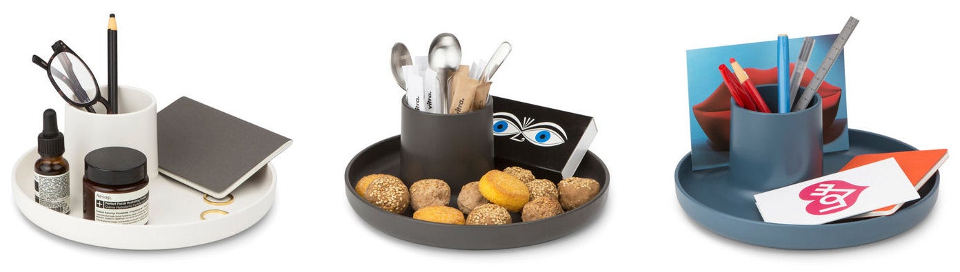 O-Tidy by Michel Charlot is a practical, versatile organizer, which combines the simple shapes of a cup and dish in one. O-Tidy is made of robust plastic and comes in a selection of colours.