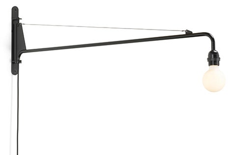 Jean Prouvé created the first version of the Potence wall lamp in the 1940s for his own home in Nancy: a simple light bulb affixed to a long, pivoting steel bar, which is held by a steel wire. This functionalist, puristic design was soon produced in various sizes, with an added handle on larger models to facilitate the swivel movement. Petite Potence has similar proportions to the larger model Potence, while its compact dimensions are ideally suited to smaller interiors. The swing arm is 103 cm long, with a powder-coated finish in colours derived from the original hues used by Prouvé. The cable is sheathed in a high-quality textile casing. Thanks to its reductive aesthetic, Petite Potence is an ideal lighting choice for a wide variety of settings, from dining and living rooms to offices or cafés.