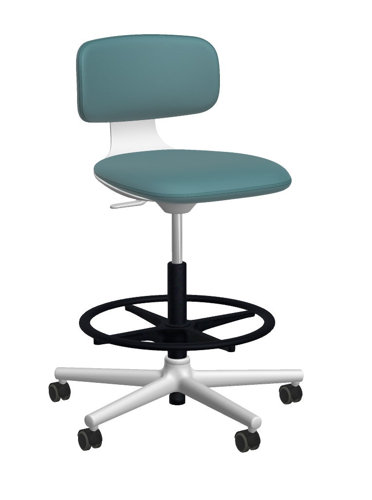 Rookie High translates the advantages of the Rookie office chair to standing table height. Pleasantly comfortable, it adapts quickly and easily to each user with the aid of minimal elements and functions. The ability to alternate between sitting and standing postures at office desks and in meetings ensures optimum ergonomics – and when it is the user that changes position, rather than the table top, the action is spontaneous and dynamic. The seat, backrest and steel foot ring are vertically adjustable, and the latter serves as a practical support when sitting or standing. This makes Rookie High an excellent choice for any environment in which people wish to engage at eye level, whether they are seated or not – for example in offices and meeting rooms or at touch-down workstations.