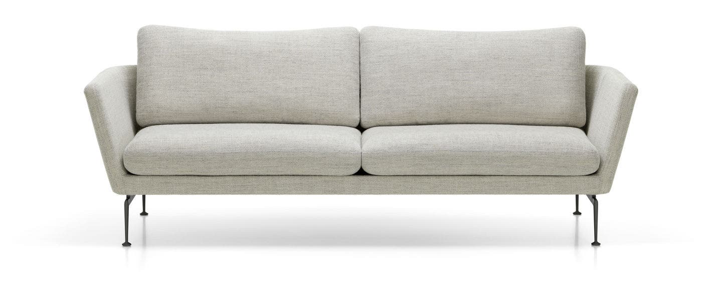 Suita is a collaborative creation between Vitra and Citterio, born in 1950, and serves to add a system including both sofas and chairs that all subtly combine Italian flair for lightness and elegant workmanship with Swiss industrial quality and precision. Suita takes the classic sofa and gives it a contemporary, lightweight, yet industrial and technical look. The geometrical, clear lines of the body and the soft-worked paddings seem to float on top of the bridge-like feet made of polished aluminum. With their rounded form, these feet can be considered to pay homage to American mid-century design.