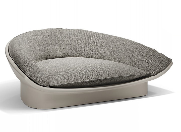 The Luna daybed, designed by Ramón Esteve, combines sustainability and supreme comfort. Made of 100% recyclable polyethylene through rotational moulding, it incorporates polyurethane foam and synthetic fibre cushions, guaranteeing an exceptional rest experience.