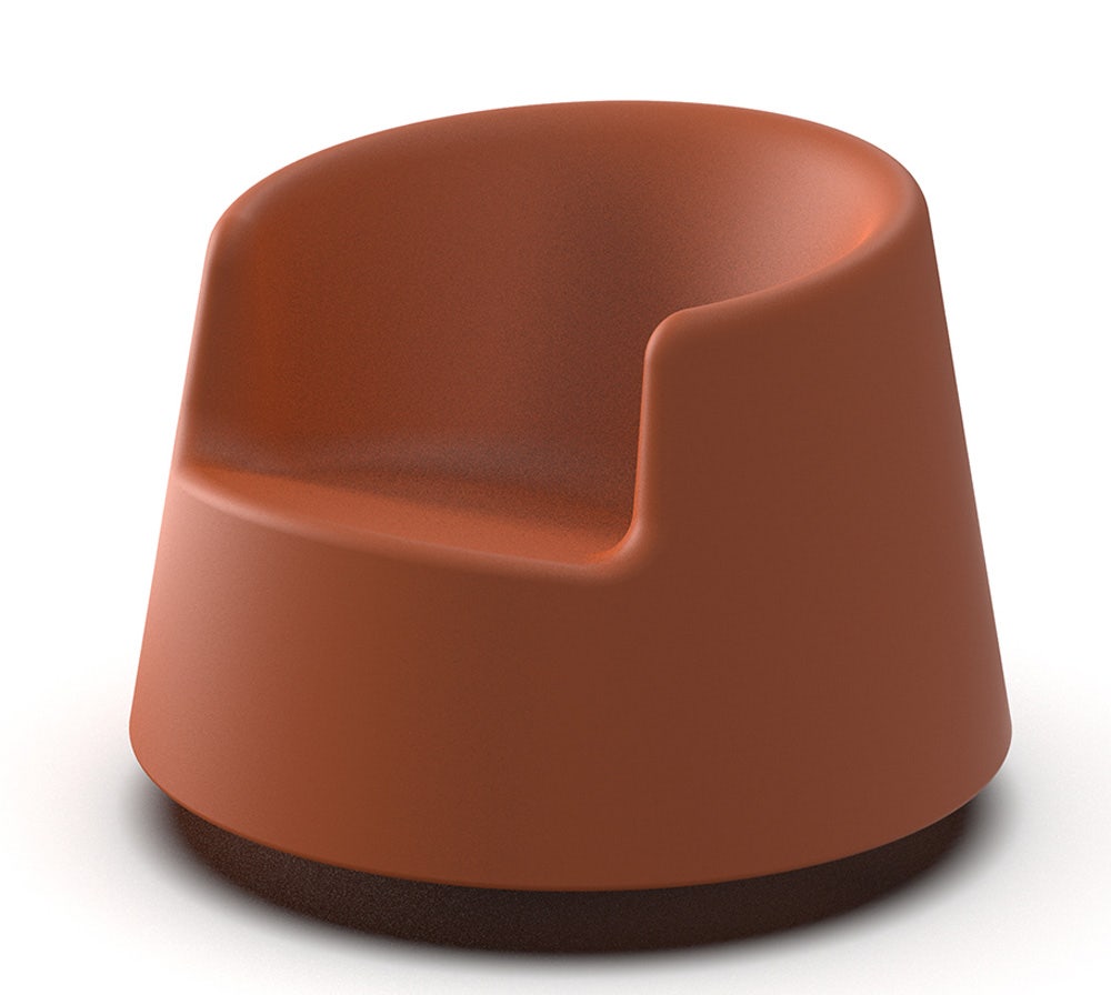 As this piece's designer Eero says, for all designers, the most common, interesting, and difficult object to design is a chair. Chairs for the home usually have four legs, stools have three, and office chairs have two or only one leg. Many plastic chairs don’t have legs at all instead the body of the chair becomes the leg as well. When Eero started designing a chair for VONDOM, he had this concept of the leg being a part of the body of the chair in mind, and he also wanted to see what new could be accomplished with a rotation mold technique in chair design. Because he has always been fond of rocking chairs and the round, rocking shape is easy to achieve with the rotation mold, he ended up with a design that rocks in all directions and also spins due to its contact with the ground at one point. The high armrests give a sense of security when spinning the chair around and also provide good support while sitting. He wanted to find an international name for the chair, which also would immediately give the association for the spinning movement, and that’s why he ended up with the name ”Roulette”.