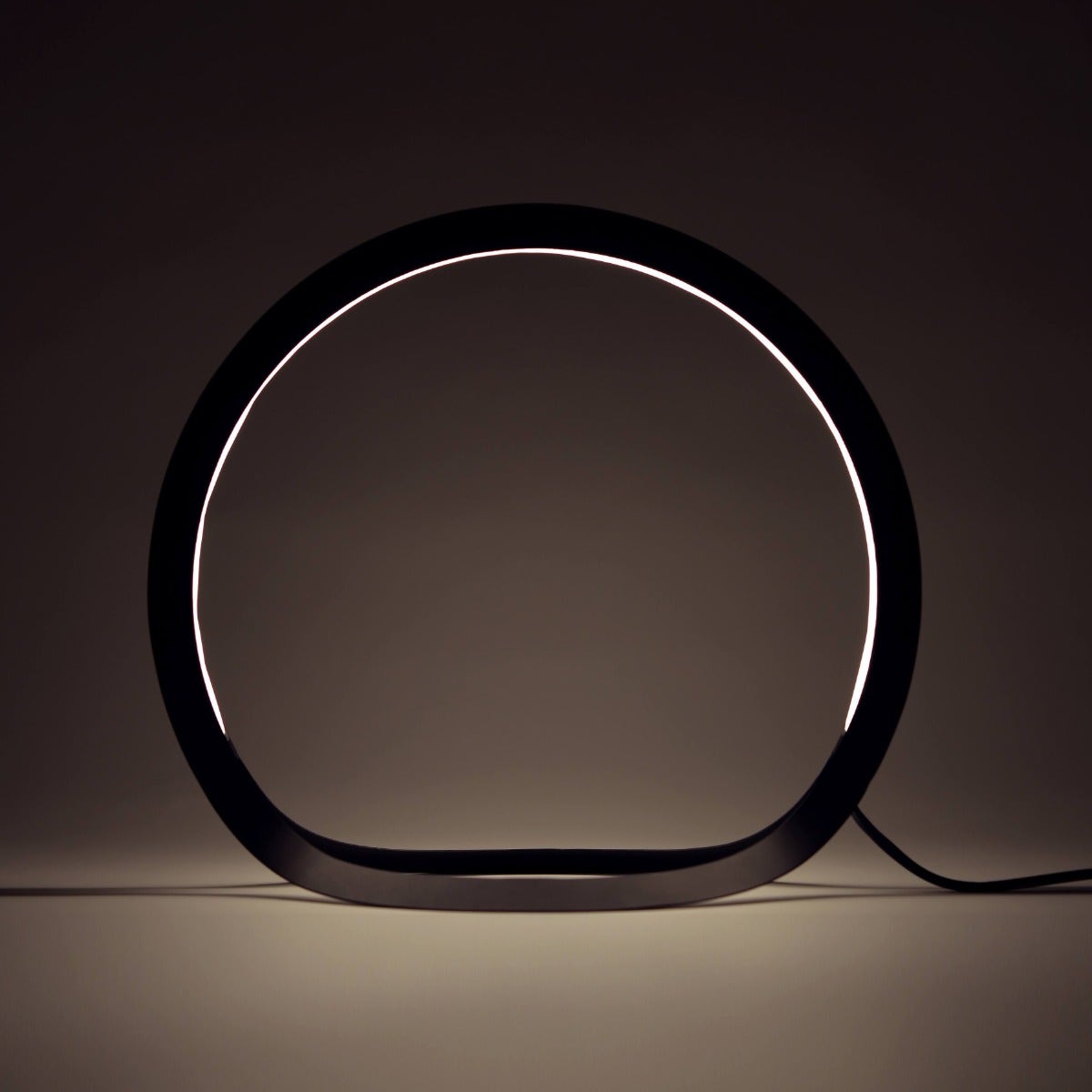 HOOP is a table lamp that marries function and style. The sculptural organic line connects from the shade to the leg stand, resembling a minimalist art sculpture. Slimness and delicacy were pursued in this streamlined design that only an LED light and bent she MORE INFO